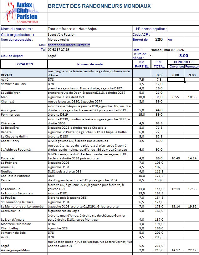 Le 09 mai 2026, départ du groupe Milon, rue de la roirie 49500 Segré